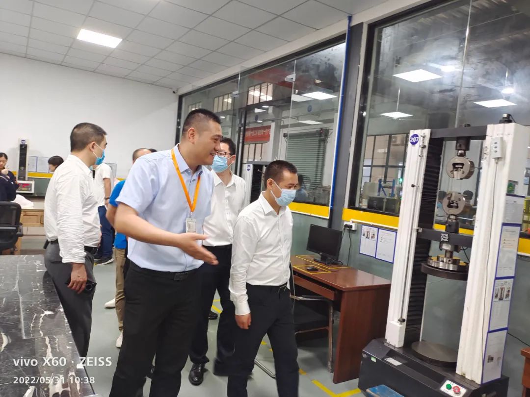 在檢測室,吳縣長參觀了材料的檢測設(shè)備、彈簧的特性檢測設(shè)備以及疲勞檢測設(shè)備,同時鼓勵我們多做測試,積累數(shù)據(jù),了解并掌握材料在制作和使用中的力學(xué)分布情況,讓彈簧的性能達到極致。
