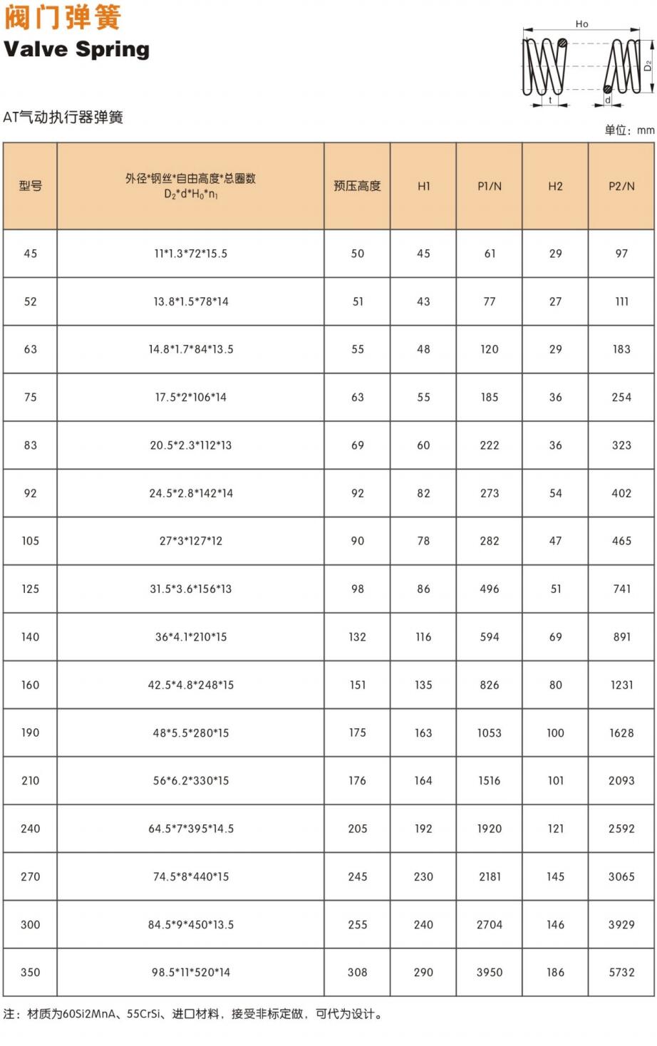 推薦使用材料: 17-7PH、 GH4145、 GH4169、 InconelX-750、Inconel 718、60Si2MnA、304、316